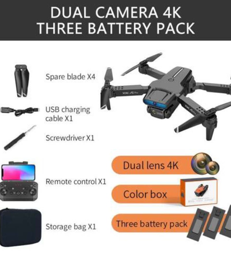 Aerial photography APP function: one-key takeoff/one-key landing/up/down/left/right turn/smart obstacle avoidance/smart follow/up and down ESC camera/360° roll/headless mode/fast/slow gear/photograph/video/switch dual Camera/face/gesture recognition automatic photo/gravity sensor/trajectory flight/positioning flight/one-key return to home.